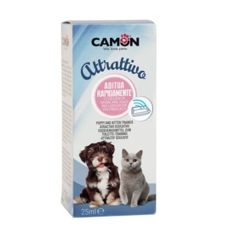 Camon Attrattivo Educativo Igienico 25 ml è un concentrato specifico per educare cuccioli e gattini a sporcare nei luoghi designati. Formula che insegna a scoprire i posti adatti per i bisogni ed evitare luoghi proibiti. Pratico contagocce per applicazione semplice. Spargere quotidianamente poche gocce sulla lettiera, tappetino assorbente o giornale. Abitua rapidamente gli animali al luogo prescelto. Made in Italy. Metodo educativo efficace e non invasivo.