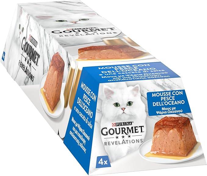 Ogni confezione di Gourmet Revelation Mousse è un concentrato di nutrienti marini, preparato con pesci pregiati pescati nel pieno rispetto degli ecosistemi. La consistenza cremosa e vellutata garantisce un’assimilazione immediata e un piacere gustativo che farà la gioia anche dei gatti più schizzinosi.