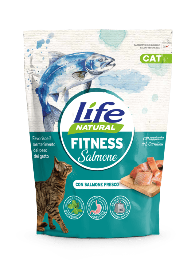 Life Cat Fitness Salmone 800g è un alimento secco completo e bilanciato, specificamente formulato per gatti adulti con particolare attenzione al controllo del peso e al mantenimento della forma fisica ottimale.