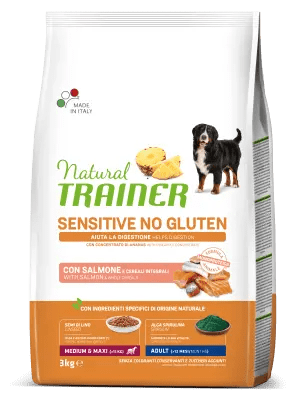 Proteine disidratate di salmone 12% , granturco integrale 11,5% , riso , piselli , fioretto di granturco , proteina di granturco , farinaccio di riso , salmone 6,5% , riso integrale 4% , grasso di origine animale , semi di lino* 2,8% , olio di granturco , sostanze minerali , aroma senza proteine animali , estratto secco di radici di cicoria (fonte di inulina)* 0,7% , lignocellulosa , estratto secco di gambo di ananas* 0,1% , alghe marine (Schizochytrium spp.)* 0,08% , spirulina (Arthrospira platensis)* 0,02%. , *Ingredienti di origine naturale specifica Additivi nutrizionali: vitamina A 26000 UI, vitamina D3 1350 UI, vitamina E 555 mg, solfato di rame(II) pentaidrato 49,13 mg (rame: 12,5 mg), carbonato di ferro(II) 310,5 mg (ferro 150 mg), iodato di calcio anidro in granuli rivestiti 3,85 mg (iodio 2,5 mg), selenito di sodio 0,44 mg (selenio 0,2 mg), ossido di zinco 193,4 mg (zinco 156 mg), ossido di manganese (II) 45,1 mg (manganese 35 mg)., ADDITIVI ORGANOLETTICI: estratto secco di Boswellia serrata* 600 mg., **Può contenere tracce di altre proteine animali. proteina grezza 24%, grassi grezzi 14%, fibre grezze 2,5%, ceneri grezze 7%, magnesio 0,1%, omega-3 1,5%.